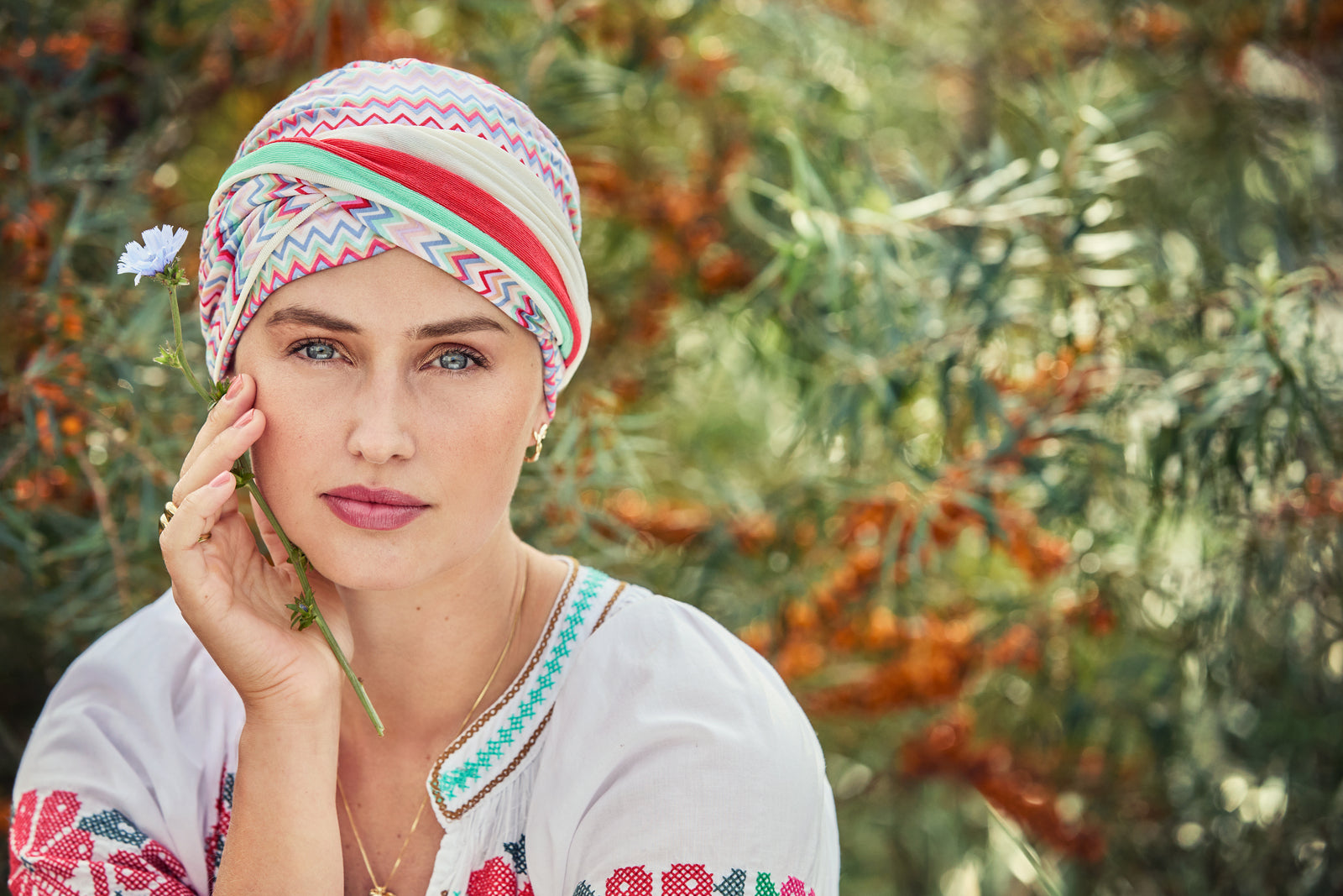 Tutti i turbanti e copricapo Christine Headwear sono ideati per essere utilizzati da donne che hanno perso i capelli a causa di malattie o trattamenti.